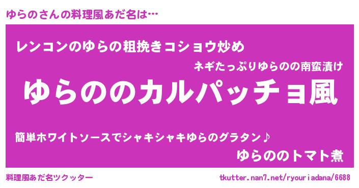 | 意味不明あだ名 | 『住所不定無職ゆらの(6歳)』『自称ゆらの』 |