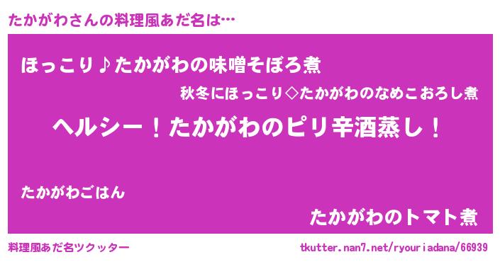| 意味不明あだ名 | 『自称たかがわ』『ペロリンたかがわ』 |