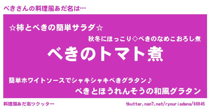 | ヘコむあだ名 | 『べき太郎』『べきにゅー』 |