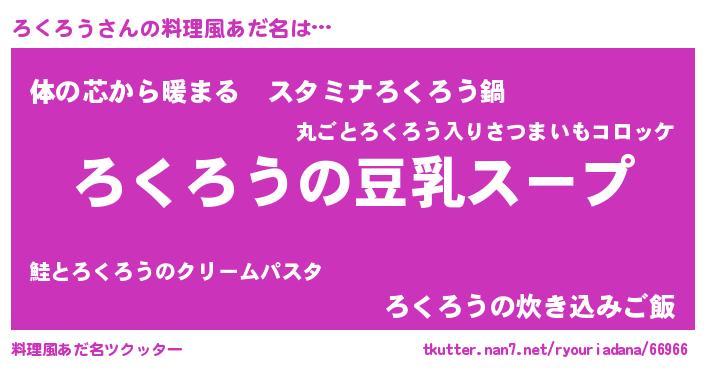| ヘコむあだ名 | 『ろくお』『豆乳』『ろくにゅー』 |