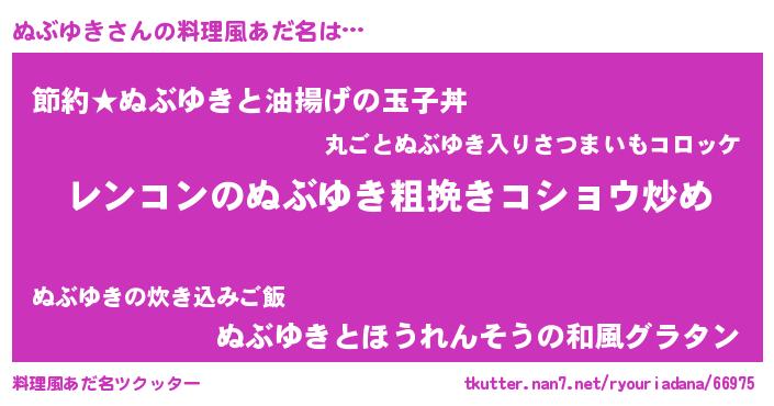| ヘコむあだ名 | 『ぬぶもー』『豆乳』『ぬぶを』 |