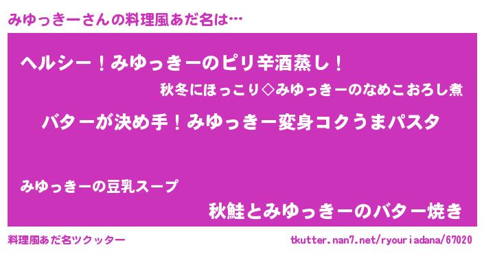 | 女子向けラノベタイトル風あだ名 | 『みゆっきー恋絵巻』『闇のみゆっきー』 |