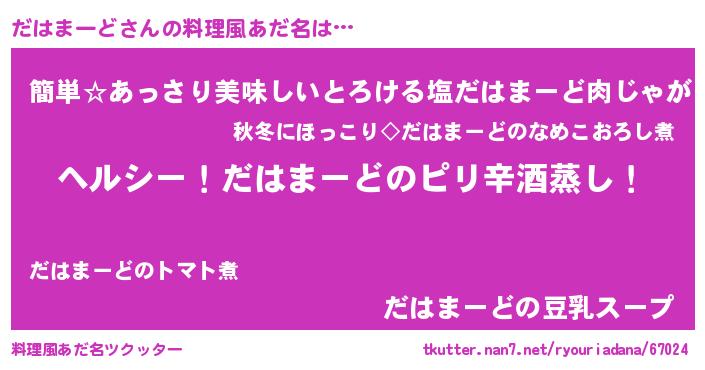 | 男性向けラノベタイトル風あだ名 | 『Re:だはまーどから始める異世界生活』 |