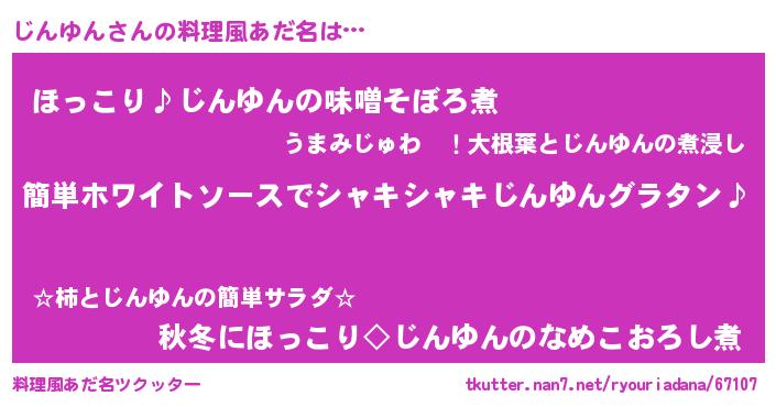 | 男性向けラノベタイトル風あだ名 | 『じんゆんの嫁は女の子じゃないと思った?』 |