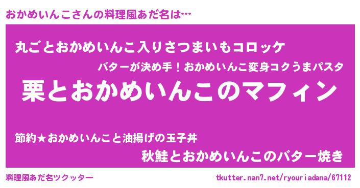 | ヘコむあだ名 | 『おかめいんこ(笑)』『おかにゅー』 |