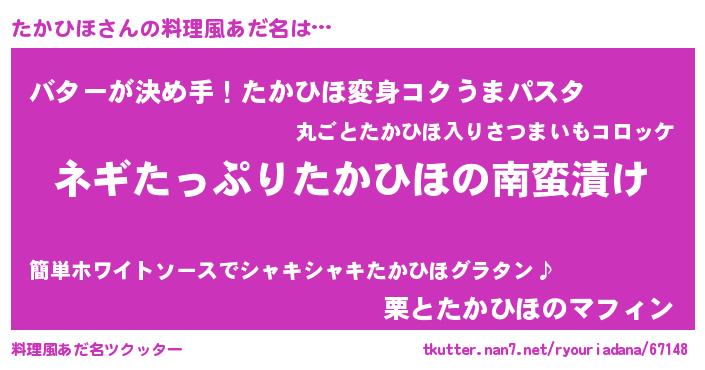 | ヒーロー風カッコイイあだ名 | 『スーパータカヒホ』『愛の使者たかひほ』 |