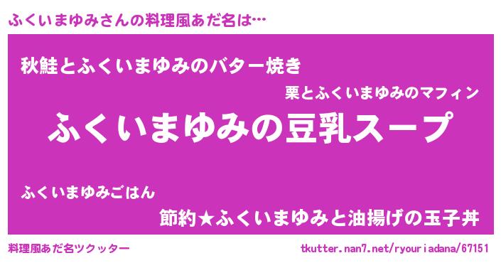 | 男性向けラノベタイトル風あだ名 | 『ダンジョンにふくいまゆみを求めるのは間違っているだろうか』 |