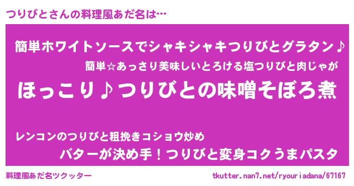 | ヘコむあだ名 | 『つりにー』『つりぷりん』『牛乳』 |