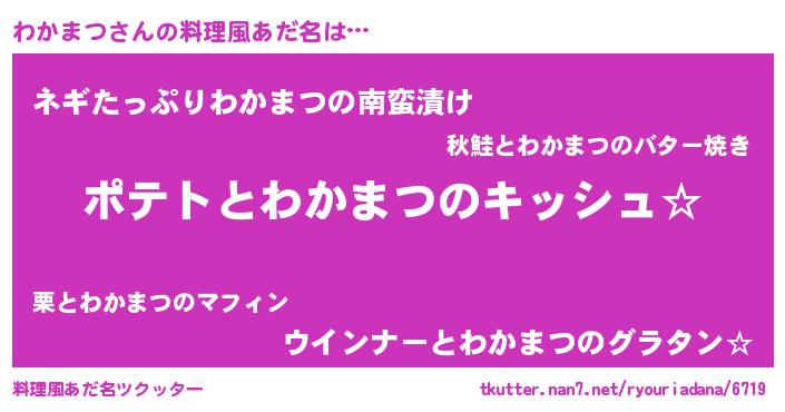 | ポケモン風あだ名 | 『ヒワカマツ』『ワカチュウ』 |