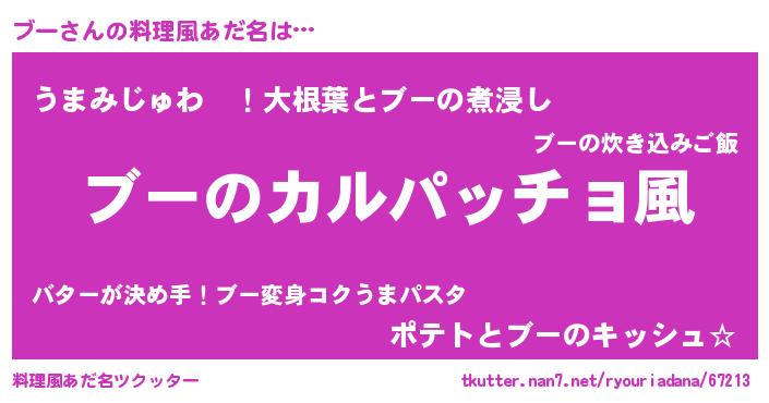 | 意味不明あだ名 | 『住所不定無職ブー(53歳)』『永久保存ブー』 |