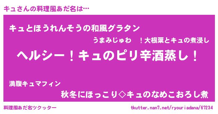 | 女子向けラノベタイトル風あだ名 | 『キュストレイドッグス』『キュの婚約者』 |