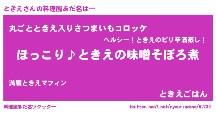 | 男性向けラノベタイトル風あだ名 | 『ときえの憂鬱』『トキエスレイヤー』 |