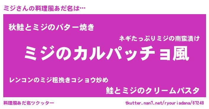 | 男性向けラノベタイトル風あだ名 | 『魔弾の王とミジ』『魔法科高校のミジ』 |