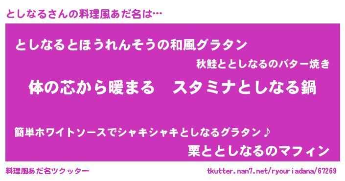 | 欧米人風あだ名 | 『としなるクリステル』 |