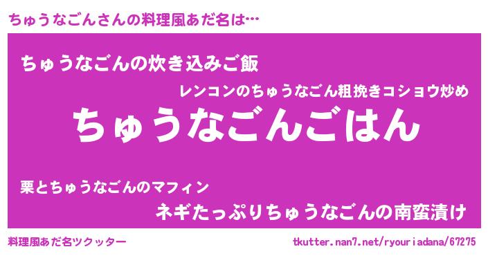 | ヒーロー風カッコイイあだ名 | 『スーパーチュウナゴン』『黄金騎士チュ』 |