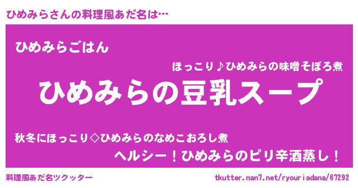 | 女子向けラノベタイトル風あだ名 | 『ひめみらは平凡を望む』 |