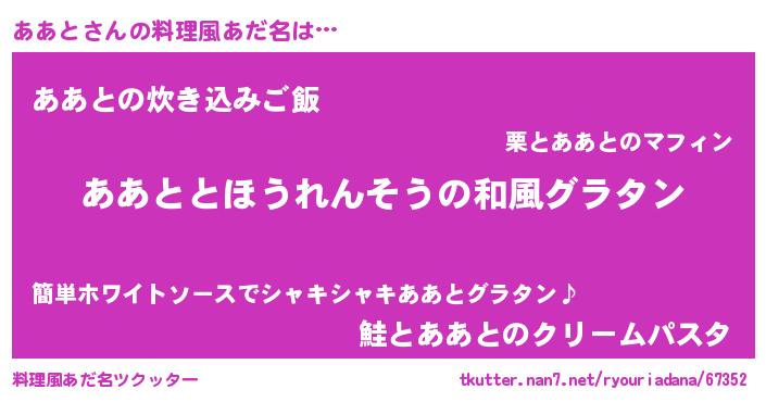 | 男性向けラノベタイトル風あだ名 | 『転生したらああとだった件』 |