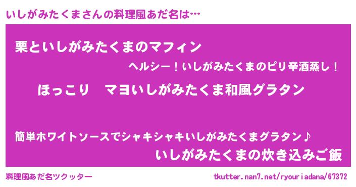 | 男性向けラノベタイトル風あだ名 | 『この素晴らしい世界にいしがみたくまを!』 |