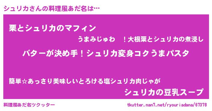 | 女子向けラノベタイトル風あだ名 | 『シュリカ恋絵巻』『シュリカの婚約者』 |