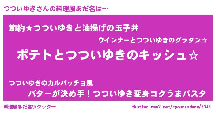 | 男性向けラノベタイトル風あだ名 | 『つついゆきの嫁は女の子じゃないと思った?』 |