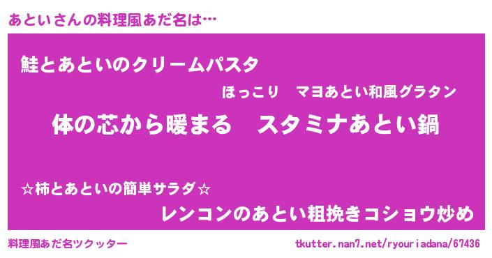 | 欧米人風あだ名 | 『あといクリステル』『ダニエルあとい』 |