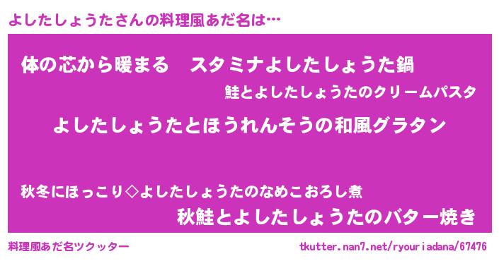 | ヘコむあだ名 | 『なまこ酢』『よしたしょうた(笑)』 |
