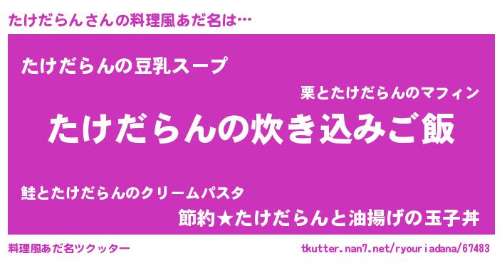 | ピコ太郎風あだ名 | 『タケ四郎』『タコ六郎』『タタ太郎』 |