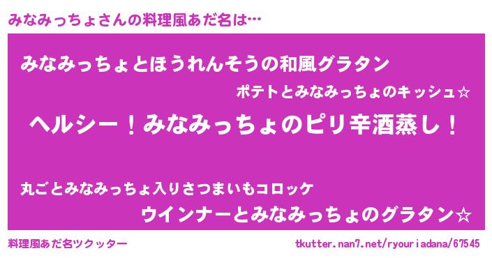 | 男性向けラノベタイトル風あだ名 | 『Re:みなみっちょから始める異世界生活』 |