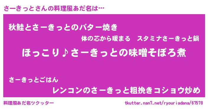 | 女子向けラノベタイトル風あだ名 | 『(仮)さーきっとのやんごとなき事情』 |