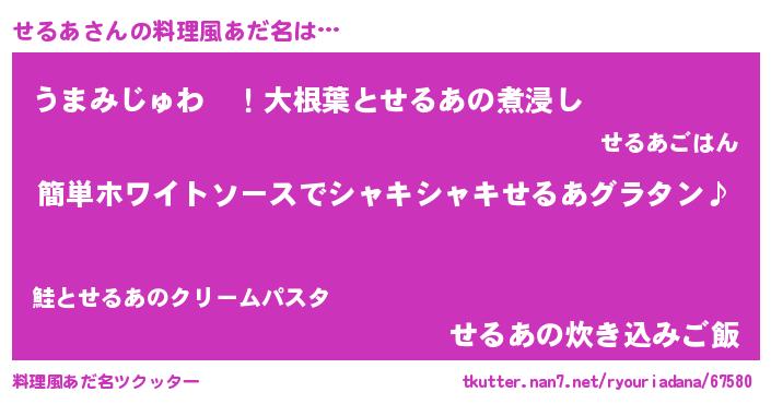| 女子向けラノベタイトル風あだ名 | 『せるあ様がみてる』『せるあの婚約者』 |