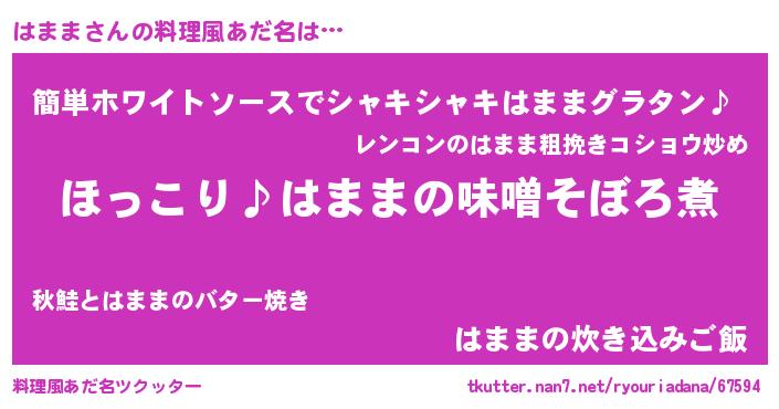 | ポケモン風あだ名 | 『ハマチュウ』『ヒハママ』 |