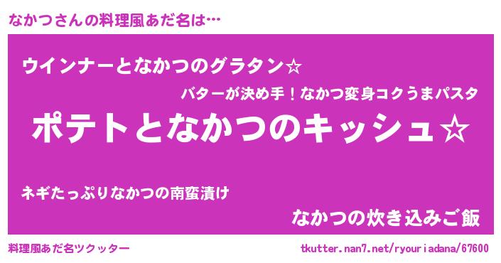 | 意味不明あだ名 | 『とにかく怪しいなかつ』『自称なかつ』 |