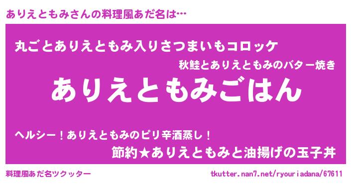 | ヘコむあだ名 | 『ありにゅー』『ありえともみ(遠い目)』 |