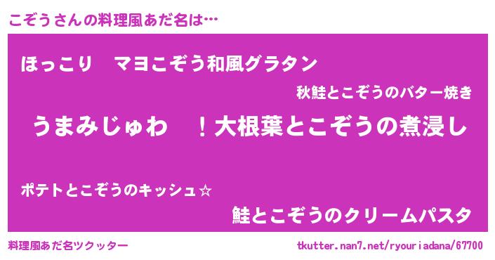 | ファンタジー風あだ名 | 『エターナルコゾウー』『ヴァルコゾーナ』 |
