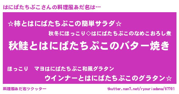 | 意味不明あだ名 | 『永久保存はにばたちぷこ』 |