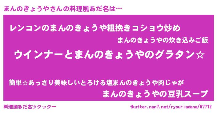| 意味不明あだ名 | 『まんのきょうやフォーエバー』 |