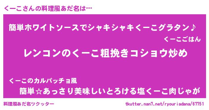 | 胡散臭い通販商品みたいなあだ名 | 『ガンによく効く冬虫夏草…その名も「くーこ」』 |