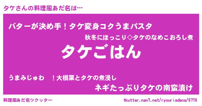 | ヘコむあだ名 | 『タケにゅー』『豆乳』『タケっぺ』 |