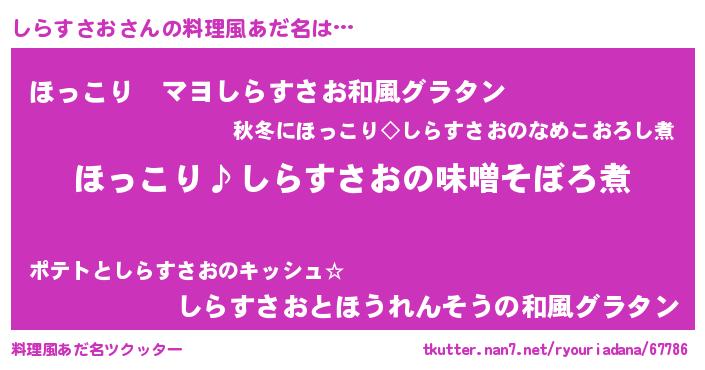 | 胡散臭い通販商品みたいなあだ名 | 『必ず成功するブレスレット…その名も「しらすさお」』 |