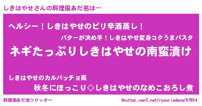 | 男性向けラノベタイトル風あだ名 | 『シキハヤセアートオンライン』 |
