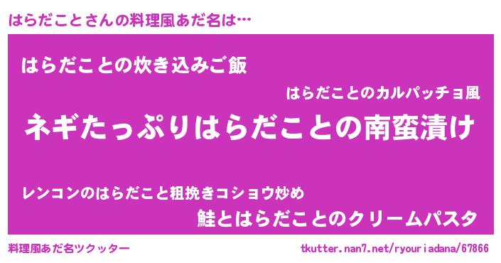 | 男性向けラノベタイトル風あだ名 | 『ハラダコトアートオンライン』 |