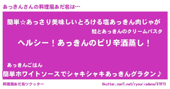 | 胡散臭い通販商品みたいなあだ名 | 『芸能人もオススメする高麗人参…その名も「あっきん」』 |