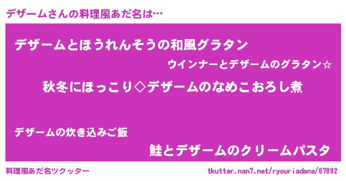 | 男性向けラノベタイトル風あだ名 | 『デザームに滅ぼされるだけの簡単なお仕事です』 |