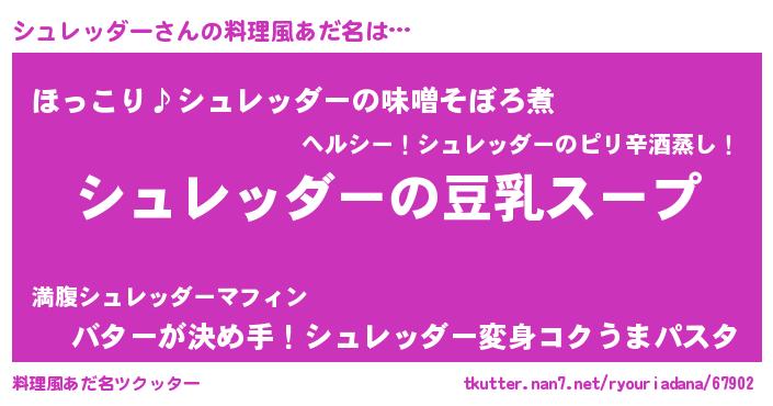 | ヒーロー風カッコイイあだ名 | 『暗黒騎士シュ』『スーパーシュレッダー』 |