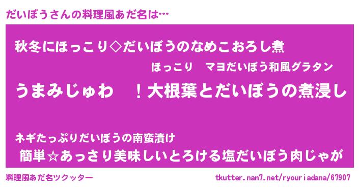 | 女子向けラノベタイトル風あだ名 | 『だいぼうの婚約者』 |