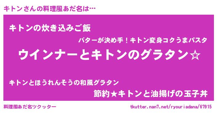 | 女子向けラノベタイトル風あだ名 | 『キトン伯爵の花嫁』『キトン恋絵巻』 |