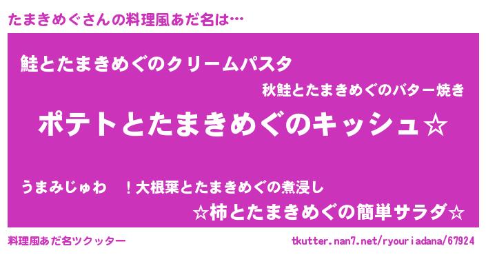 | 男性向けラノベタイトル風あだ名 | 『たまきめぐの嫁は女の子じゃないと思った?』 |
