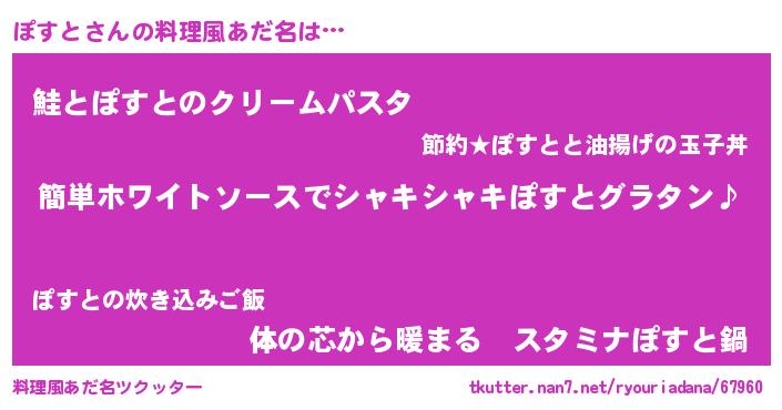 | 女子向けラノベタイトル風あだ名 | 『ぽすと様がみてる』『死神ぽすとの再婚』 |
