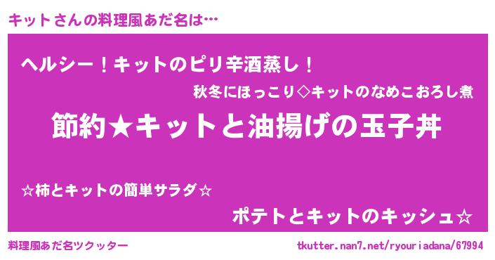 | 意味不明あだ名 | 『ペロリンキット』『自称キット』 |