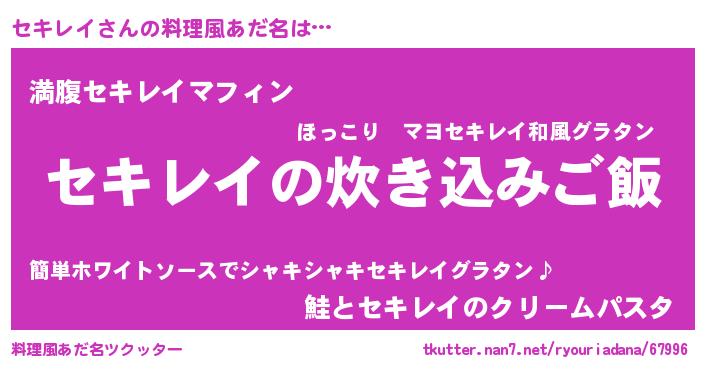| 意味不明あだ名 | 『永久保存セキレイ』 |